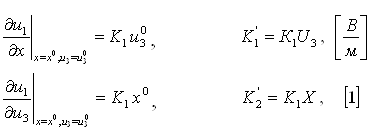 1) Для линеаризации зависимости напряжения подаваемого на компенсационную обмотку генератора U1 от задающего напряжения Uз и перемещения ручки потенциометра Х, необходимо найти частные производные U1 по переменным Uз и Х в точках номинальрого режима