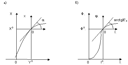 3) Зависимость магнитного потока возбуждения Ф1 генератора от величины тока возбуждения I1 задана графически. Отметив на графике точку номинального режима и проведя касательную к графику в этой точке, получим линеаризованную зависимость магнитного потока от тока в отклонениях.