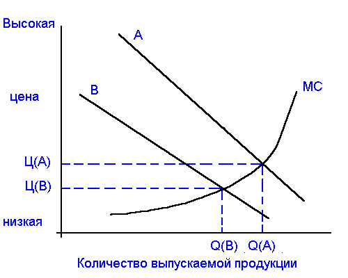 Таким образом, в условиях чистой конкуренции, когда цена на продукцию на рынке едина для всех, график среднего дохода (AR) и предельного (MR) совпадают и не зависят от изменения объёма продаж.