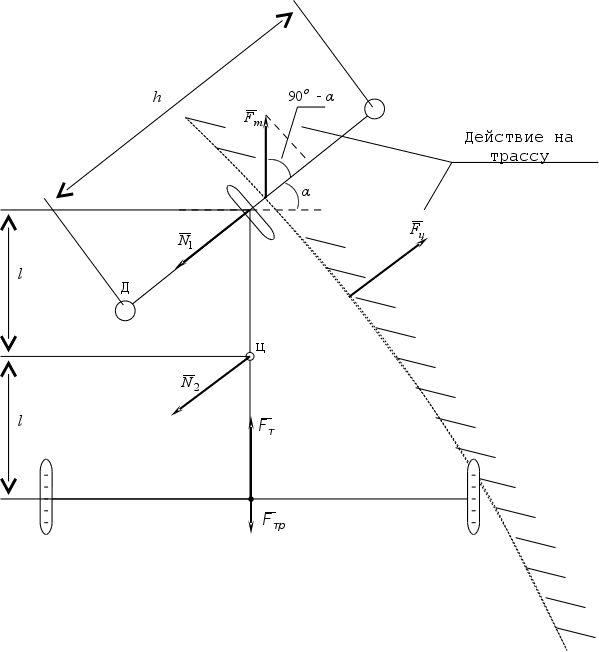 определяется произведением массы тележки и нормальной составляющей ускорения её центра масс, возникающей при закруглении траектории движения: