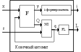 Общая структурная схемаГраф, построенный в предыдущем пункте, не является полностью определенным, поскольку переходы под воздействием сигнала a не имеют выходных сигналов. Поэтому, составим схему конечного автомата.
