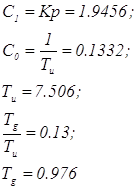 Рассчитываем оптимальные значения параметров настройки для ПИ – регулятора.