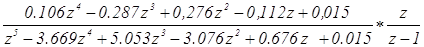 1-го порядка: z=-0,307 и z=-0,045. Полюс 2-го z=1. Для вычисления переходной функции необходимо вычислить производную следующей функции
