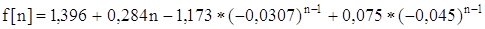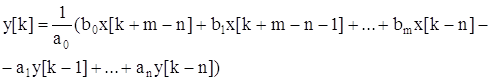 Этой передаточной функции соответствует уравнение в конечных разностях:
