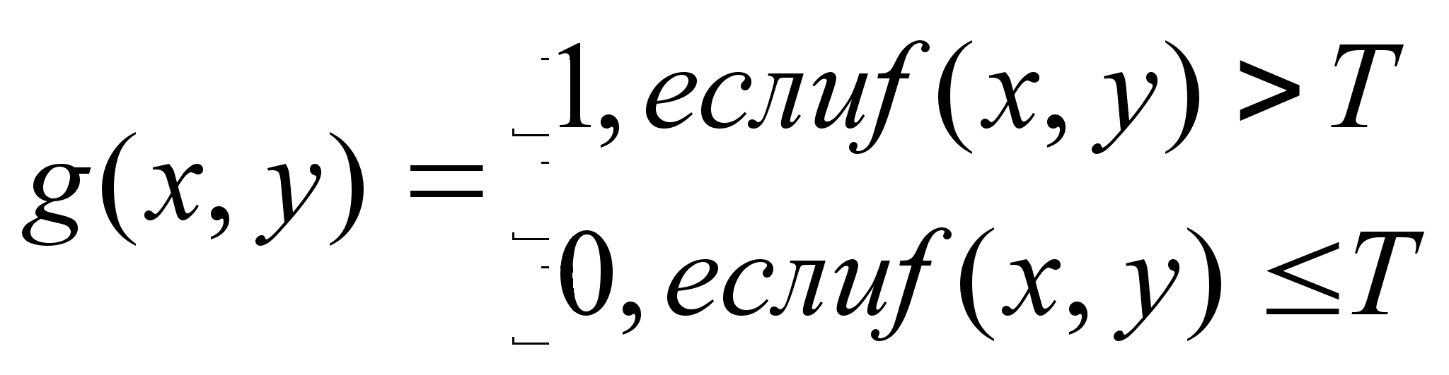 где f(x, у) —интенсивность в точке (х, у), р(х, у)—некоторое локальное свойство, определяемое в окрестности этой точки. Пороговое изображение дается следующим выражением: