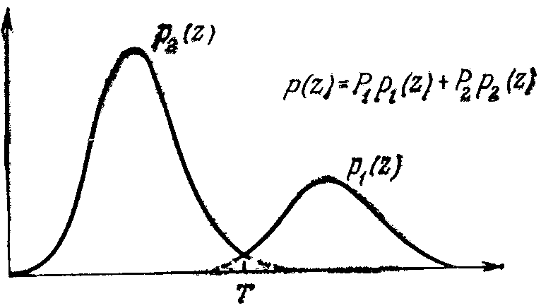Итак, если известны функциональные зависимости p1(z) и р2(г),. это уравнение можно использовать для нахождения оптимального порога, который отделяет объекты от фона. Если этот порог известен, уравнение может быть использовано для сегментации данного образа.