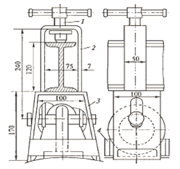 1 – опорная скоба; 2 – прижимная скоба; 3 – штифт; 4 - винт
