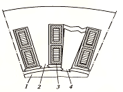 1 –ротор; 2- статор; 3 – медь обмотки статора; 4 –обломившийся лист зубца