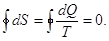 Если обратимый процесс характеризуется замкнутым циклом, то очевидно изменение энтропии и контурный интеграл от приведенной теплоты в этом случае равны нулю (рис.1):