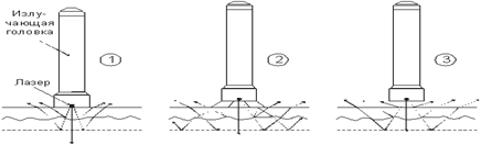 2. контактно-зеркальную, когда излучающая головка находится в контакте с облучаемой поверхностью через зеркальную или зеркально-магнитную насадку;