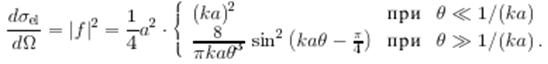 В данном случае отличие от классического результата связано с наличием помимо квазиклассического рассеяния, обусловленного углами θ >> 1/ka, дифракционного рассеяния на малые углы ![]()
