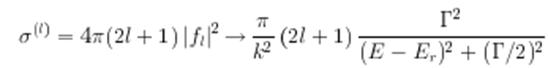 Парциальное сечение имеет резонансную зависимость от энергии: