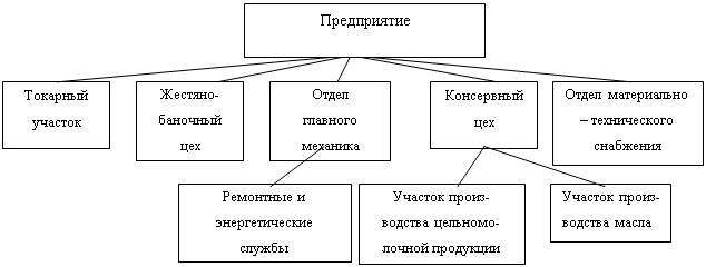 ОАО «Назаровское молоко» состоит из головного предприятия; имеет сеть торговых магазинов; производственную базу и базу складов готовой продукции и материалов. Имеет социальную сферу, в состав которой входит столовая, медпункт. Схема управления предприятием представлена на рис. 1.