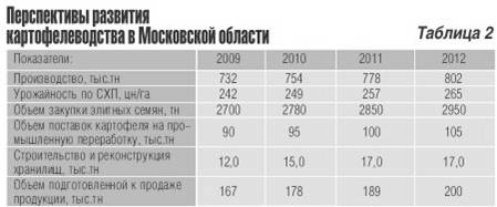 Долгосрочной целевой программой "Развитие сельского хозяйства Московской области на период 2009-2012 годов" предусмотрено получение в отрасли картофелеводства намеченных показателей по всем категориям хозяйств (таб. 2).