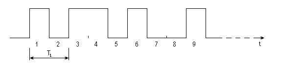 мкс. На рис. 1.2 показаны импульсы, содержащие 9 битов, где биты 2, 5, 7, 8 имеют значение 0, биты 1, 3, 4, 6, 9 - значение 1. Показанное на рис. 1.2 сочетание битов 1 и 2 требует наиболее широкую полосу частот в канале передачи. Период этого сочетания битов