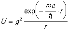 Якщо застосувати цю формулу до випадку, коли переносниками взаємодії є кванти електромагнітного поля — фотони, маса спокою яких m = 0, і врахувати, що замість g повинен стояти електричний заряд е, то вийде добре відома енергія кулонівської взаємодії двох зарядів: Uел = е2/r.