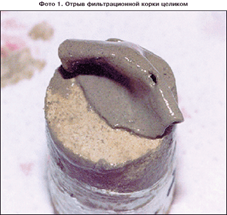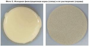 Частицы бурового шлама, входящие в структуру корки, способны снизить эффективность действия растворов специальных реагентов. Эффективность обработки часто определяется временем (временем реакции), необходимым для прорыва корки и потерями жидкости. Быстрый прорыв корки может являться неэффективным и даже опасным, т.к. раствор брекеров может быстро просачиваться сквозь высокопроницаемые зоны, не разрушая фильтрационную корку по всей поверхности ствола в продуктивном пласте (рис. 1, фото 2). Раствор брекеров с долгим временем реакции может способствовать достижению последующих высоких дебитов скважины за счет равномерной обработки во всем интервале, в т.ч. и на участках с различной проницаемостью (фото 3).