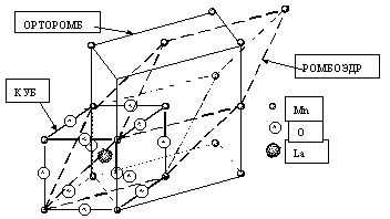 Для поиска катализаторов были выбраны нестехиометрические оксиды 3d-переходных (Mn, Co, Ni, Cu) редкоземельных (La, Pr, Nd) металлов. В этом ряду соединений особое место занимают манганаты, кобальтаты и купраты лантана с общей формулой La1-x Mex MO3±y (Me = Ca,Sr,Ba; M = Mn,Co,Cu). Эти соединения обладают перовскитоподобной структурой, которая является очень лабильной и по мере изменения состава, температуры и давления кислорода в газовой фазе может искажаться. Элементарная перовскитоподобная кристаллическая ячейка с возможными видами искажений представлена на рис. 2. Наличие в кислородных октаэдрах ионов кобальта и марганца, склонных к кооперативным взаимодействиям, к изменению степени окисления и различным магнитным спиновым состояниям, делают эти объекты уникальными по сочетанию магнитных, электрических и каталитических свойств.