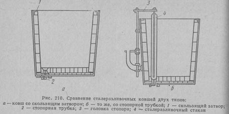 В настоящее время в Японии почти все крупногабаритные ковши оборудованы скользящими затворами. Вертикальные стопорные разливочные устройства применяются мало. Но, поскольку для их изготовления требуются огнеупорные материалы, о них необходимо рассказать.