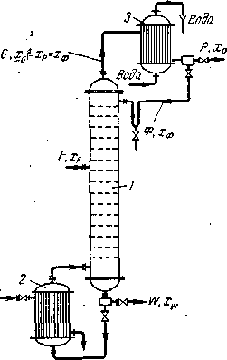 Рис.1.7. Схема непрерывно действующей ректификационной установки: