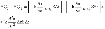 Пусть u (x, t) – температура в сечении стержня с абсциссой х в момент t. Опытным путем установлено, что скорость распространения тепла, т. е. количество тепла, протекающего через сечение с абсциссой х за единицу времени, определяется формулой