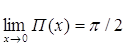 Построим C’K, образующую с CD угол a= w, ясно, что w’< a , т.к. параллельC’E’ ближе к перпендикуляру, чем расходящаяся C’K. Итак, w' < w ; отсюда следует, что угол параллельности убывает по мере удаления от прямой АВ; чем ближе т. С к прямой АВ, т.е. чем короче перпендикуляр CD, тем больше угол параллельности. Если обозначить расстояние т. С от прямой АВ, т.е. длину перпендикуляра CD через х, то можно сказать, что угол параллельности есть функция от х, названная «функцией Лобачевского» и обозначаемая П (х). Это монотонно убывающая функция. При изменении аргумента х от 0 до ¥ функция П (х) непрерывно изменяется соответственно от p /2 до 0. Таким образом ,