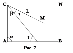 Это предположение эквивалентно аксиоме Лобачевского, то есть из него вытекает эта аксиома и наоборот. Для примера докажем первое. Пусть ( рис.7) в прямоугольном треугольнике CDK сумма углов S= a+b+g<2d, то есть b+g