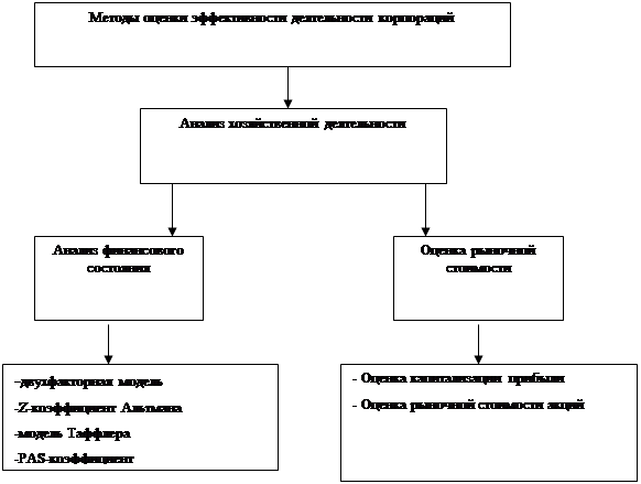 Как видно, методики оценки эффективности деятельности корпораций основаны на анализе хозяйственной деятельности. Причем данная группа методик также подразделяется на методы оценки финансового состояния и методы оценки рыночной стоимости.