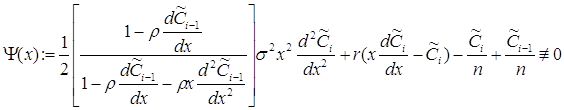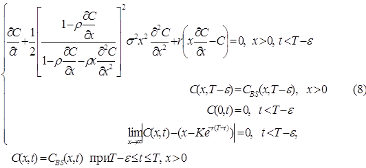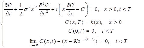 M>0 - деяке достатньо велике число, яке залежить від К, і таке, що C (x,t) =CBS (x,t) = x-Ke-r (T-t) при х ≥ М.