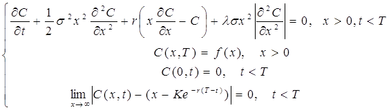 " x≥0, "tÎ (0,T) х − Ke−r (T−t) ≤ C (x,t) ≤ x