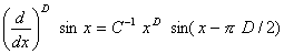 Видим, что экспонента после фрактального интегрирования приобрела нелинейный множитель. Постоянные интегрирования здесь не выписываем, если судить по дробному интегродифференциальному исчислению (11), вопрос о постоянной интегрирования неоднозначен. Интегрирование от тригонометрических функций продемонстрируем на синусе. Представляя функцию синус в экспоненциальной форме и применяя результат (12), в итоге получаем