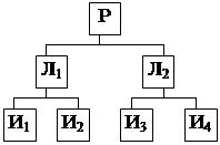 Р — руководитель, Ф — функциональные органы управления (функциональные руководители), Л – линейные органы управления, И—исполнители