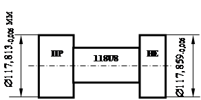| Непроходная сторона | Р-НЕmax = Dmax + H/2 Р-НЕmin = Dmax – H/2 | Р-НЕmax= 117,856 + 0,006 / 2 = 117,859 Р-НЕmin= 117,856 - 0,006 / 2 = 117,853 | ||
