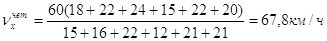 На основании норм хода поездов определим среднюю ходовую скорость грузовых и пассажирских поездов на однопутном и двухпутном участках по формуле:
