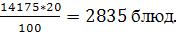 Разбивка общего количества блюд на отдельные группы (холодные блюда, супы, вторые горячие, сладкие блюда), а так же внутри групповое распределение блюд по основным продуктам (рыбные, мясные, овощные и т.д.) приводим в соответствии с таблицей процентного соотношения различных блюд в ассортименте продукции, выпускаемой предприятием (приложение №5). В нашей столовой предусмотрено несколько приемов пищи (завтрак, обед, ужин), исходя из этого количество блюд для каждого режима, определяем отдельно по формуле