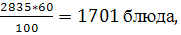 Пз = 1350*2 = 2700 блюд – завтрак,