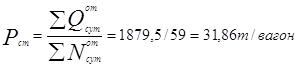 Qпр.тяж сут =140000х1,1 /365=421,9т. Nпр.тяж сут =421, 9 /34,5 =12,2= 13 вагонов.