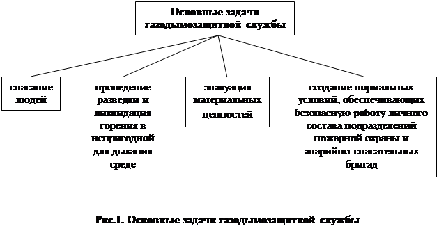 Газодымозащитная служба организуется в органах управления, подразделениях ГПС, пожарно-технических учебных заведениях МВД России для ведения боевых действий по тушению пожаров в непригодной для дыхания среде. Основные задачи газодымозащитной службы показаны на рис.1.