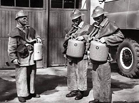 Занятия с газодымозащитниками в 50-х годах ХХ века.