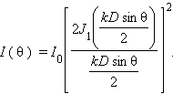 Распределение интенсивности света при дифракции Фраунгофера на круглом отверстии диаметра D выражается формулой