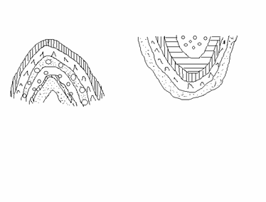 В складках , развитых в пределах складчатых областей, наблюдаются пластические перемещения некоторых горных пород, ведущие к увеличению мощности слоев на сводах складок.