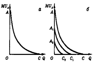 Теория предельной полезности базируется на том, что хотя потребности людей вообще говоря, безграничны - потребность в определенном товаре может быть удовлетворена. Чем большее количество товаров приобретают потребители, тем меньше их стремление к приобретению дополнительных единиц этого же товара: например, потребность человека в автомобиле, если он его не имеет, может быть очень сильной; желание иметь вторую машину гораздо менее интенсивно; а что касается третьей или четвертой машины, то потребность в них очень слаба. Даже очень богатые семьи редко имеют больше четырех-пяти машин, несмотря на то что их доходы позволяют купить и содержать целый автомобильный парк.