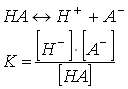 Рассмотрим процесс диссоциации электролита НА с концентрацией с и степенью диссоциации