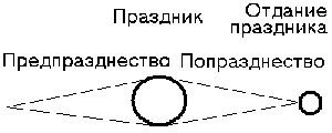 Таким образом, в этой структуре праздника является древнее восприятие времени как живой, пульсирующей сущности, в которой каждое событие постепенно подготавливается, постепенно убывает и перед тем как исчезнуть, еще раз вспыхивает яркой точкой. И чем важнее событие, чем больше праздник - тем более развернутой бывает эта структура.