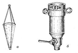 Рис. 1: а – планктонная сеть Апштейна, б – планктонный стакан