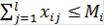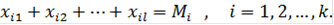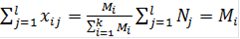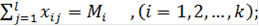 Mi - количество единиц груза в i-м пункте отправления (i = 1, 2, …, k);