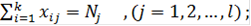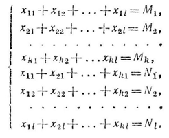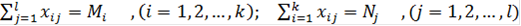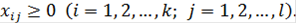 Таким образом, система ограничений (1) есть система из k+l уравнений с kl переменными.