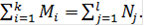 . Сложим те же элементы по столбцам, каждый столбец дает Nj, и в сумме получим