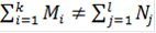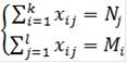Система ограничений (1) включает k уравнений, связывающих поставки i-того поставщика с мощностью Mi (i=1,2,…,k) этого поставщика, и l уравнений, связывающих поставки j-тому потребителю со спросом Nj (j=1,2,…,l) этого потребителя. Заметим, что число k равно числу строк исходной таблицы, а число l - числу столбцов.