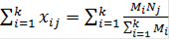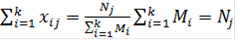 Сложим элементы xij матрицы перевозок по строкам, каждая строка в сумме дает Mi, и в итоге получим